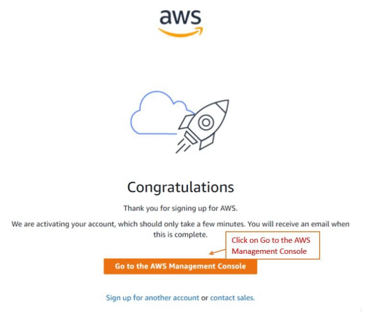 - Then, click on the link below to navigate to the AWS console in order to create an AWS account.