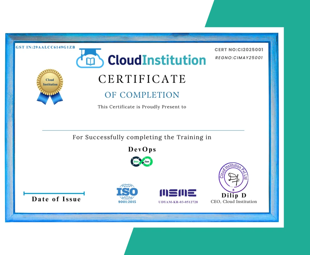 At Cloud Institution, our DevOps training is designed with real-time projects, hands-on labs, and expert mentorship. We focus on tools like Git, Jenkins, Docker, Kubernetes, Ansible, Terraform, and CI/CD pipelines, ensuring you gain job-ready skills.
