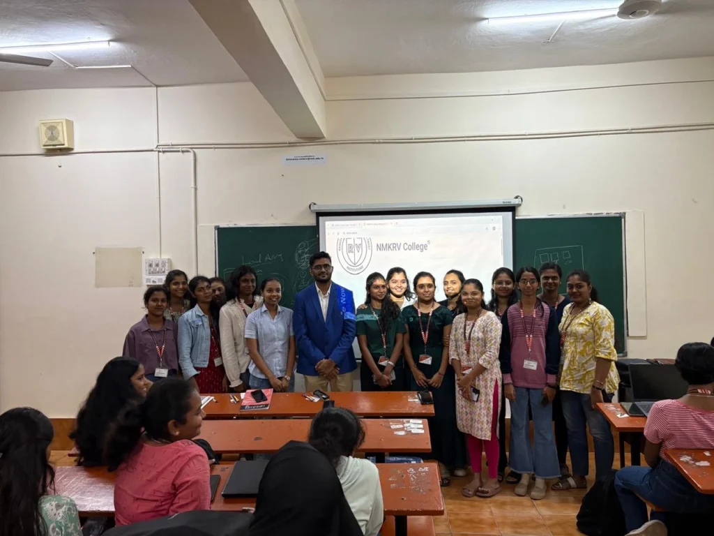 We recently visited NMRKV College for Women, Bangalore to conduct a cloud training workshop for students. The session aimed to introduce participants to key cloud computing concepts, including service models, deployment types, and real-world applications. Students received hands-on training using platforms like AWS and Azure, exploring topics such as virtual machines, cloud storage, and security.