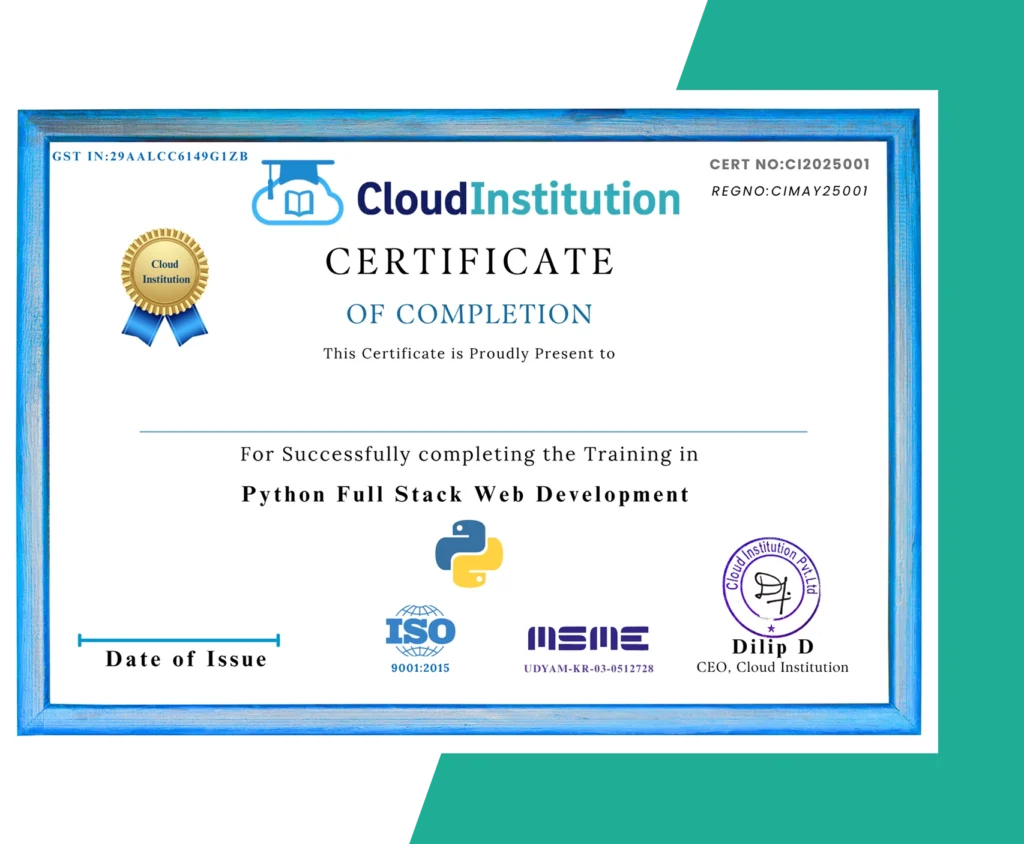 At Cloud Institution, our Python Full Stack course is industry-oriented, with hands-on coding, real-time projects, and expert trainers. You will gain practical experience in both front-end and back-end technologies, making you a job-ready developer.